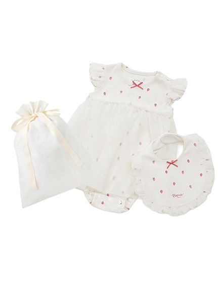 - 【公式】gelato pique(ジェラートピケ)【ラッピング済み】【BABY】ストロベリー柄チュールロンパース&スタイSET