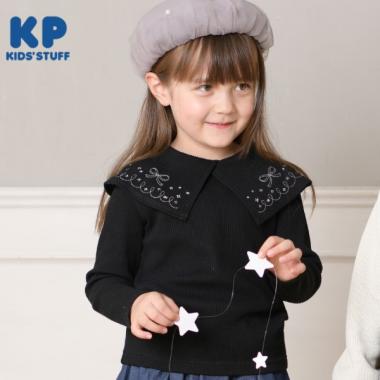 - ナルミヤオンラインKP ラメ刺しゅうビッグカラー長袖Tシャツ(90~160)