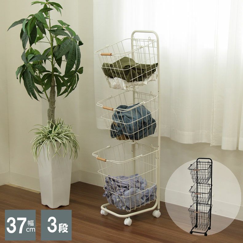 - 家具のマナベインテリアハーツ3段ランドリーワゴン ケイク