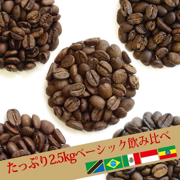 - 珈琲問屋オンラインストア◆ たっぷり2.5kg飲み比べ ベーシック5種セット(生豆時500g×5銘柄) 送料無料