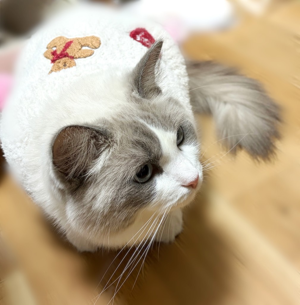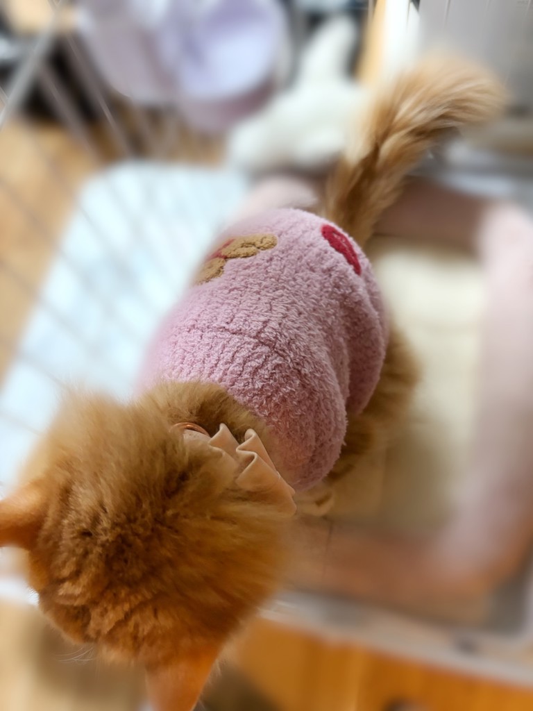 - 寒い日のおウチ用に、少し大きめゆったりサイズを選びました。 フワフワであたたかそうです。 アイボリーを選んだけど、ほんのりピンクっぽい感じがします。