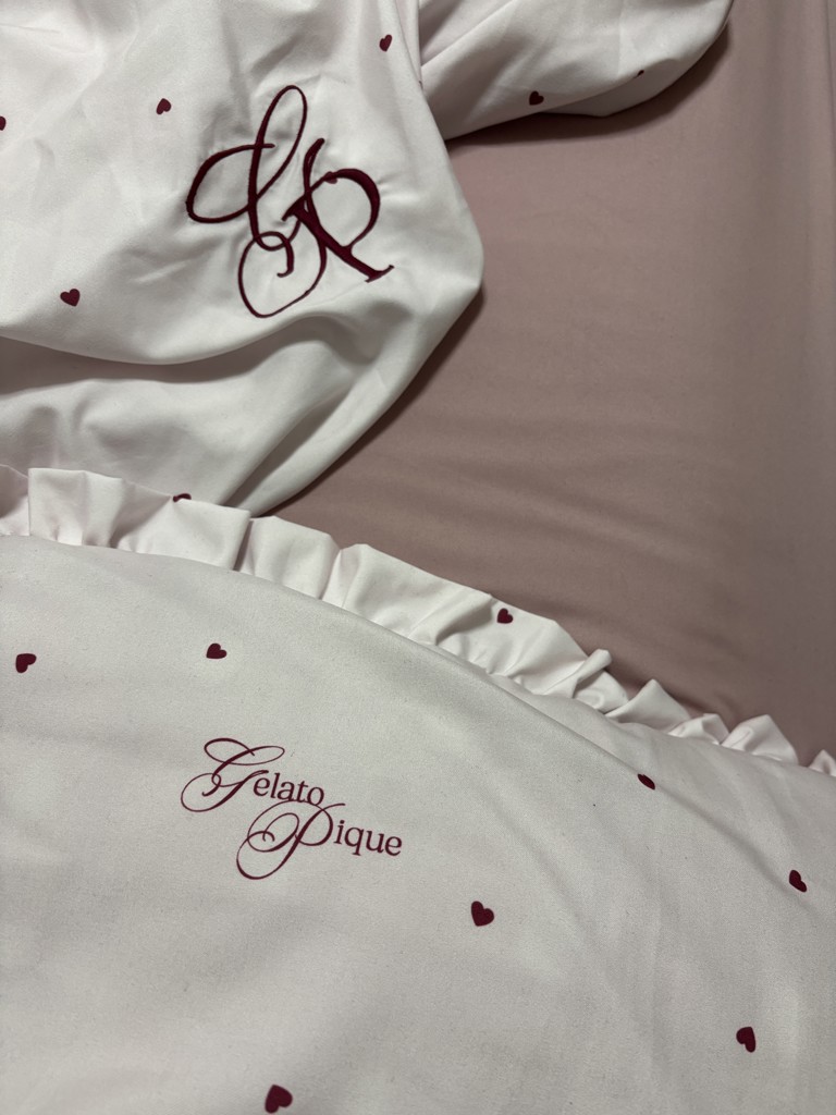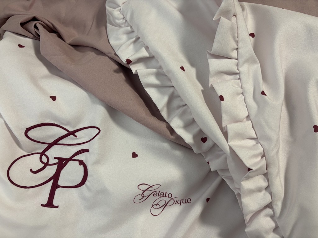 - ジェラートピケの肌触り、かわいいデザインが大好きで、パジャマを利用しているのはもちろんですが、ベッドリネン類を揃えて最高の気分で眠りについています。質の高い眠りのために、このチョイスは最適です。
