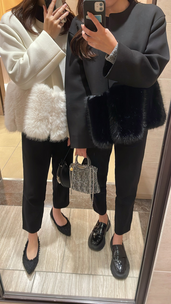 - 店舗で売り切れてるところが多かったのでネットで購入。ファーのふわふわ感がとっても可愛くて軽くて着心地もいい。