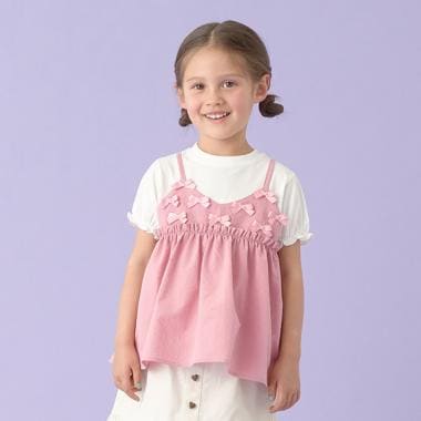 【型崩れしないやわらかコットン】リボンキャミドッキングTシャツの口コミ・レビュー