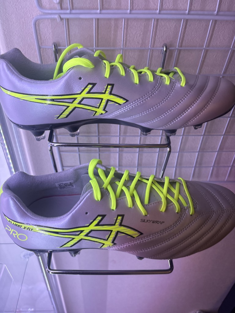 - 今まで最初に出た赤色を3足履いてたんですが、色変えたいなと思ってたときに他の人と被らなさそうな色が発売されてたので買いました。ナイターでも綺麗な発色で満足です。紐だけアシックス部分の色と同じものに変え…続きを見る