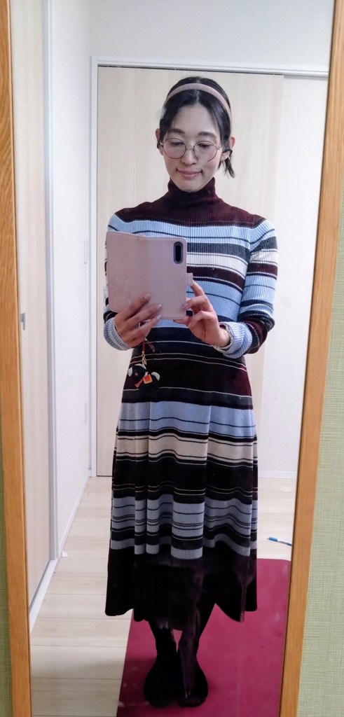 タートルネックリブニットフレアワンピースの口コミ・レビュー