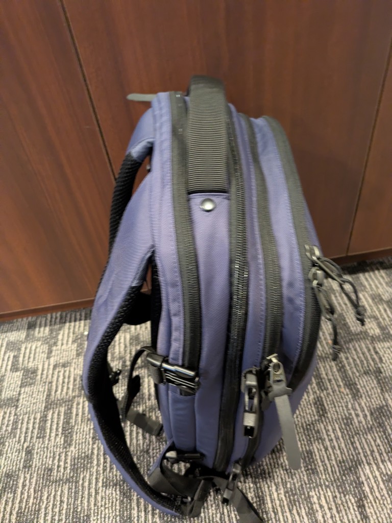 - 通勤に使っています。 シンプルなデザインなのでスーツで背負っても問題ないです。 収納も3つになっていて便利です。