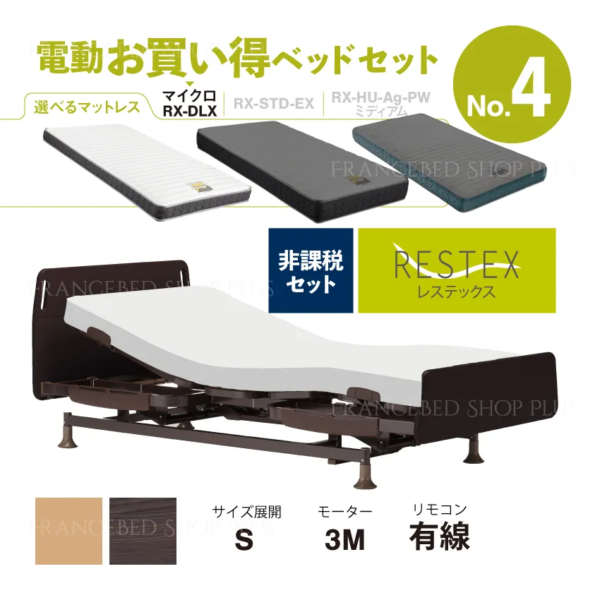 フランスベッド 電動ベッドセット4 レステックス-01FN マイクロRX-DLX 3モーター シングル 有線 非課税対象の口コミ・レビュー