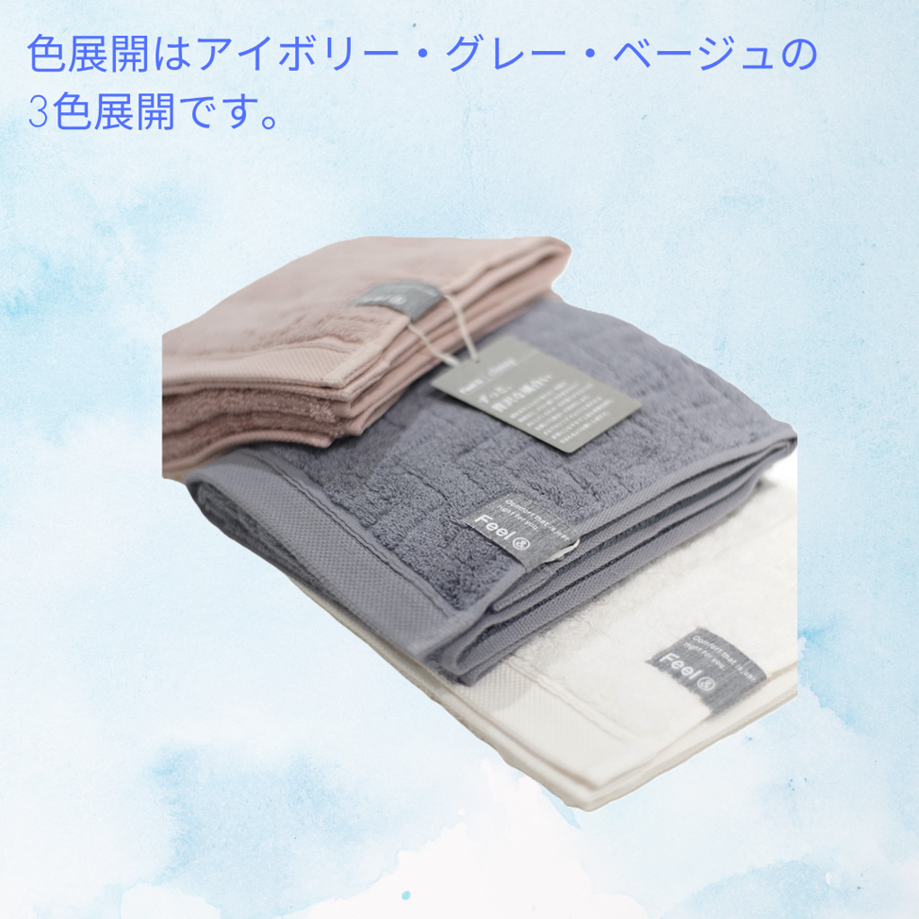 - 寝具を見ていて、今治タオルを見つけて購入してみました。生地もしっかりしていて、毎日の使用で快適、幸福度上がります。おすすめです。