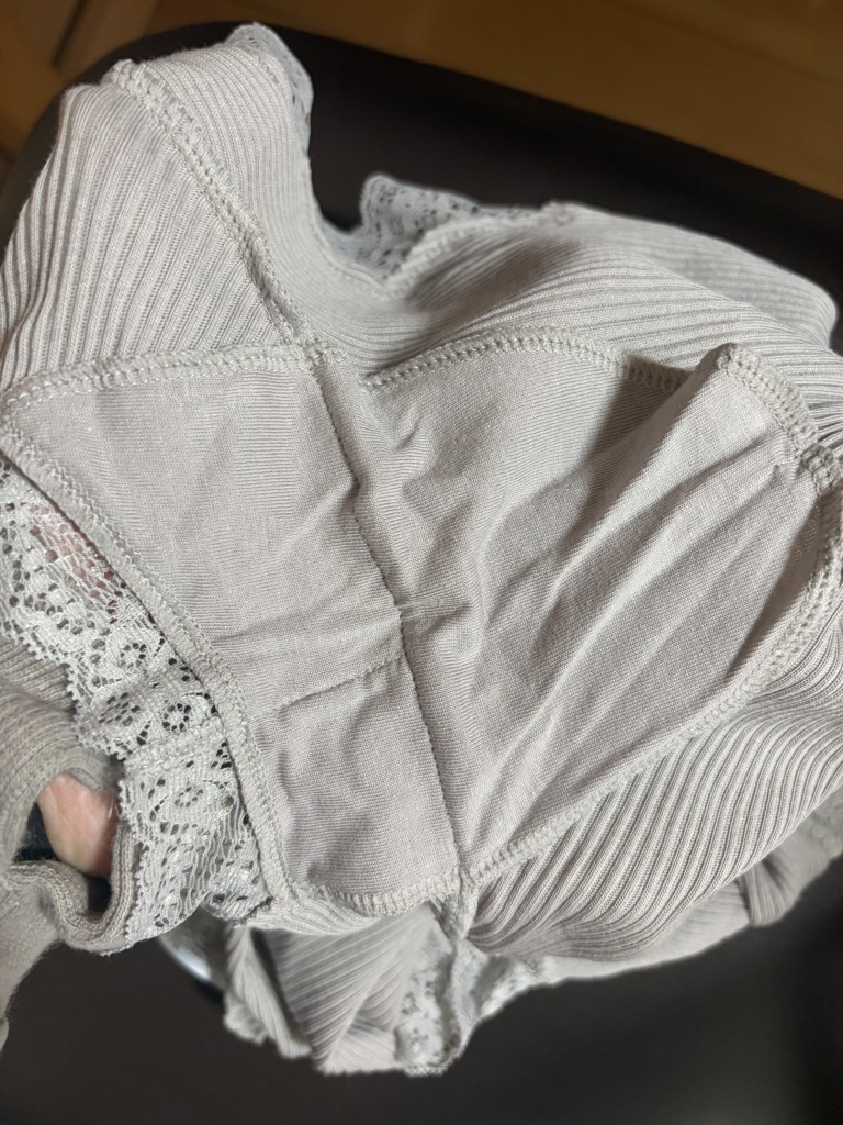 黒を購入して気に入ったので、淡いお色味のお洋服用にベージュを買い足し。上に着る物に響きにくい以外に気に入っているのは、脇パット。縫いつけ方が絶妙なので、よれないで脇にフィットして汗を吸収してくれます。