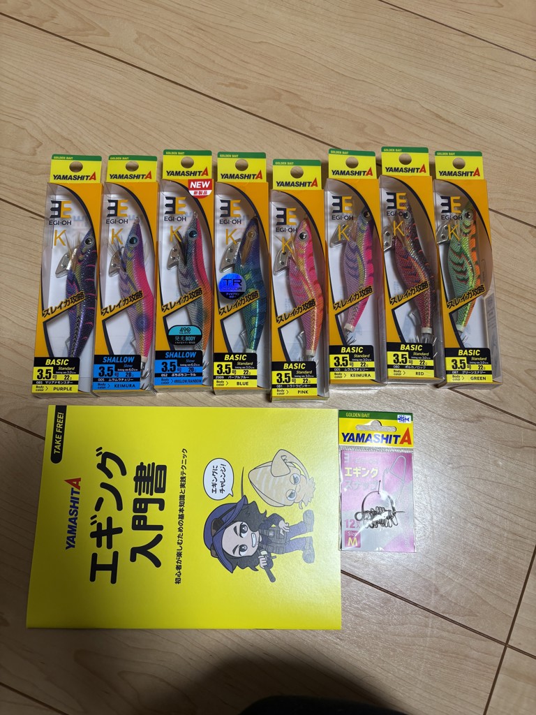 エギングを始めて3ヶ月の初心者にとって、エギの種類を選んでもらえるのは助かりますし、価格も安さ。本当にありがたい最高のセットでした。春エギングが楽しみです。