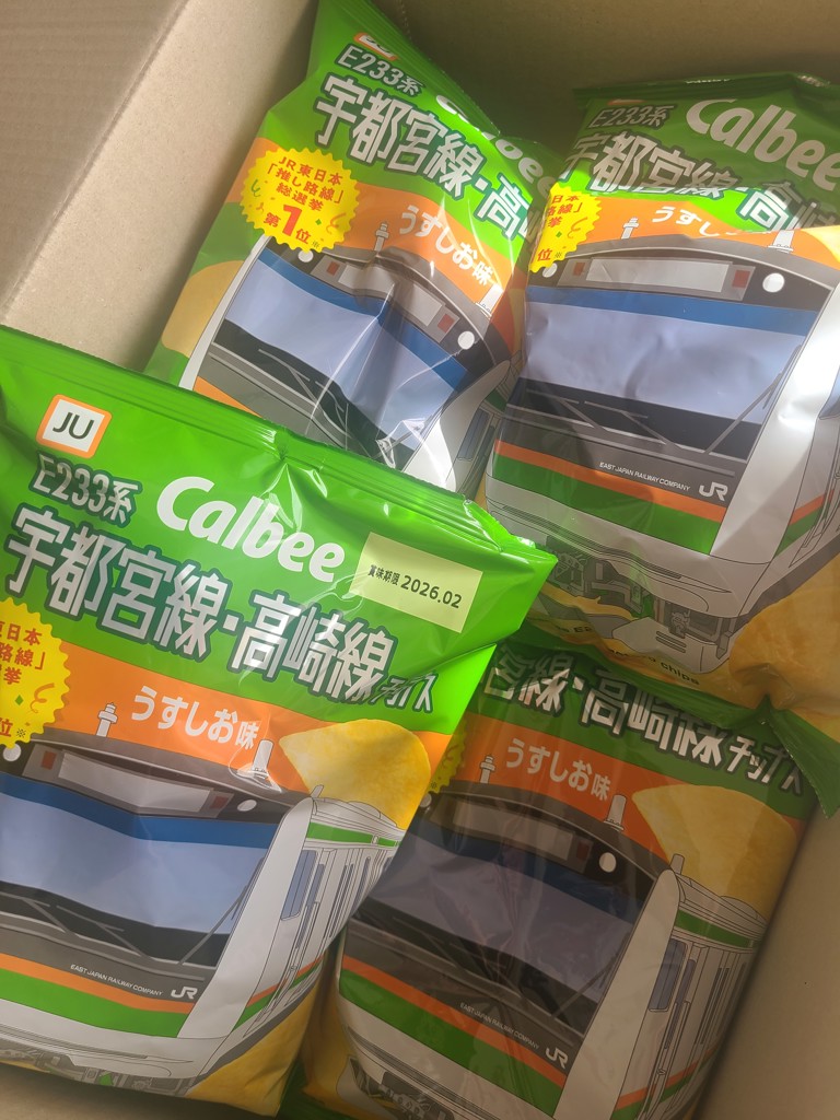 - 宇都宮線・高崎線のパッケージにつられて購入。味はやっぱり裏切らない「うすしお味」サクサク軽い食べご心地。あっと言う間に1袋食べちゃいます。