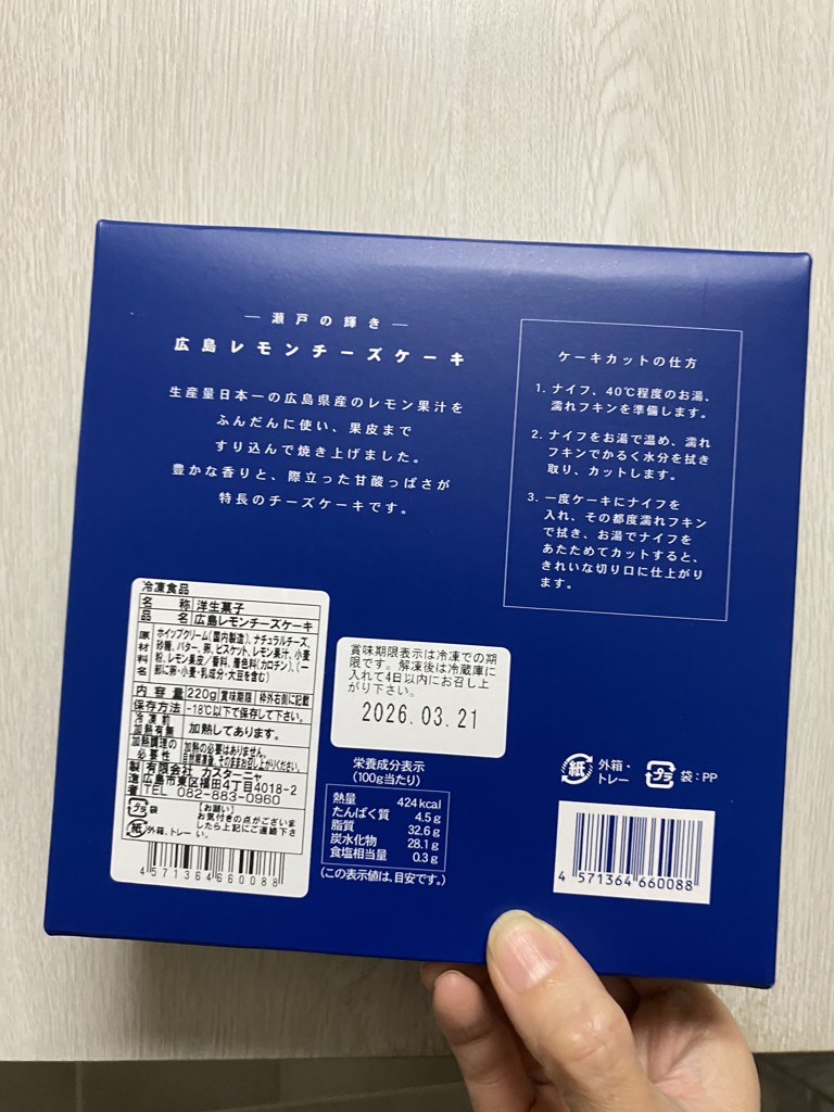 - レモンチーズケーキは、もう少し大きかったかな?と思ったのですがちょうど良かったです。 プリンも食べ方がわからず解凍して食べたのですが、何か微妙な味加減になり、凍らせたまま食べたら美味しかったです。