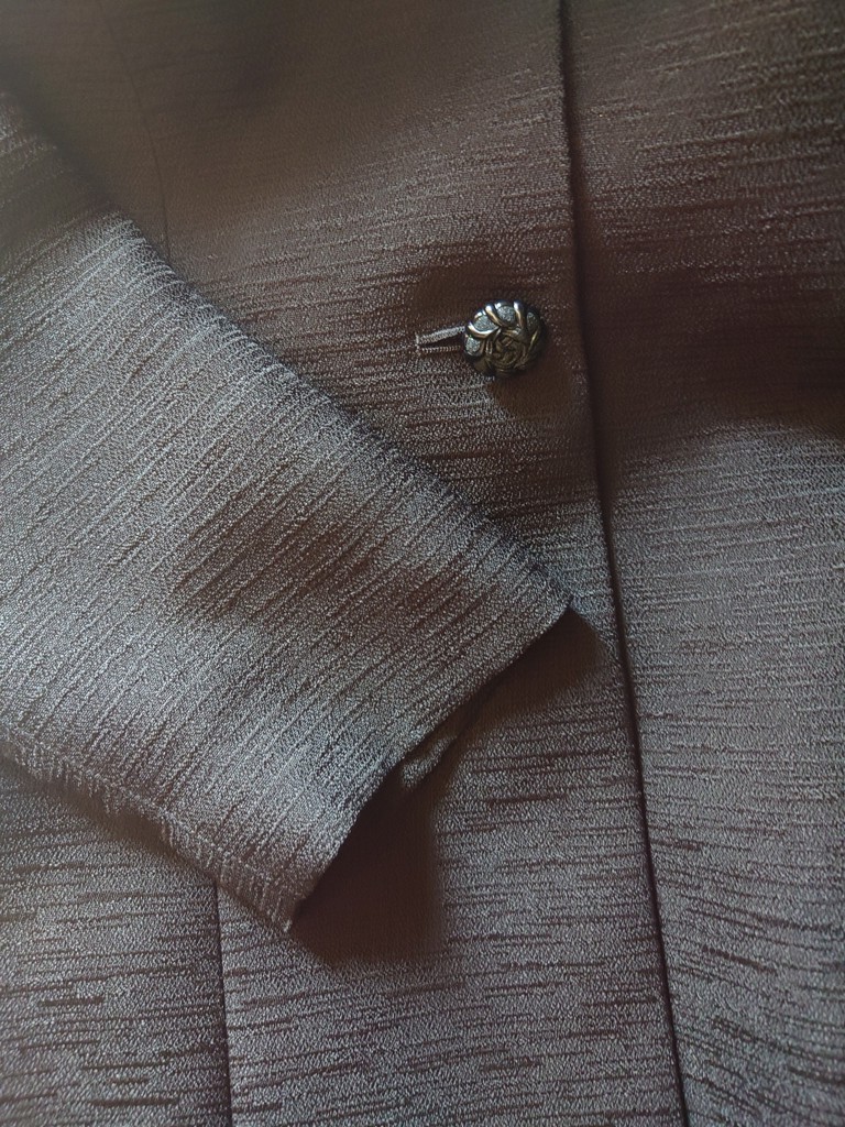 - 生地、デザイン共に上品で気に入りました。まだ着る機会が無いので不謹慎ですが着るのを楽しみにしています。今回、半額で購入できましたが正規お値段の価値はあります。