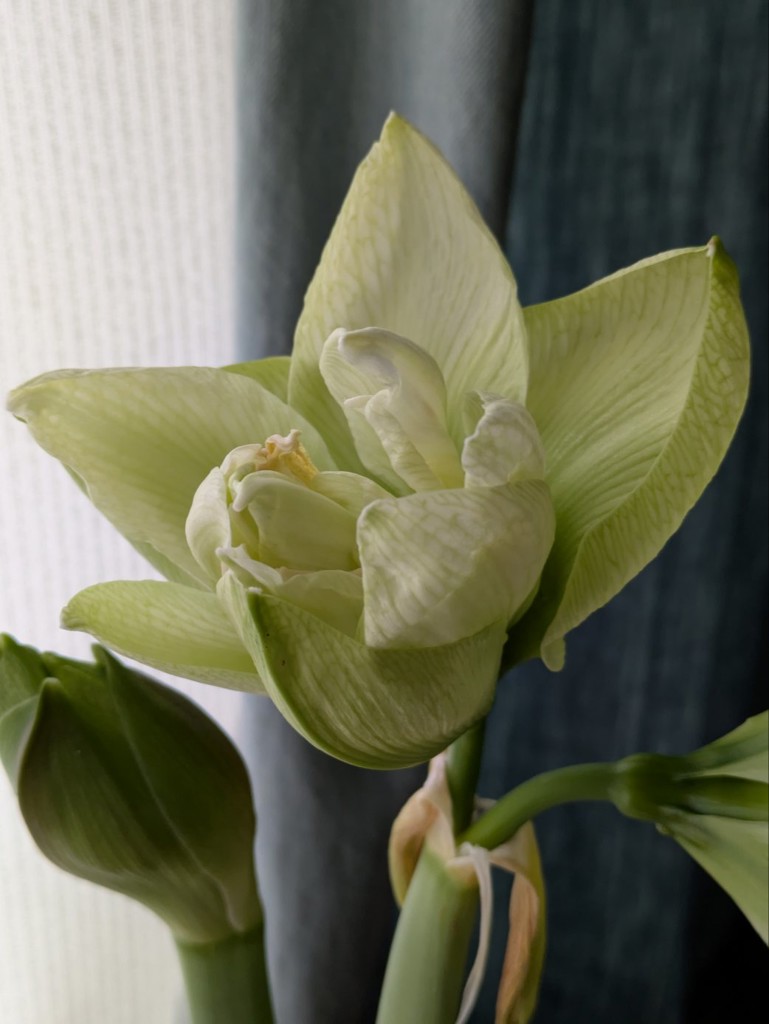 薄緑色のきれいな花が咲きました