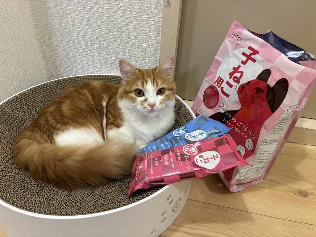- 生後5か月の子ねこ用に購入しました。 子ねこ向けの商品は食いつきにムラが出やすいですが、こちらは封を開けた瞬間から寄ってきて、香りに反応していました。 2種類のおさかなが添えられているのが嬉しく、…続きを見る